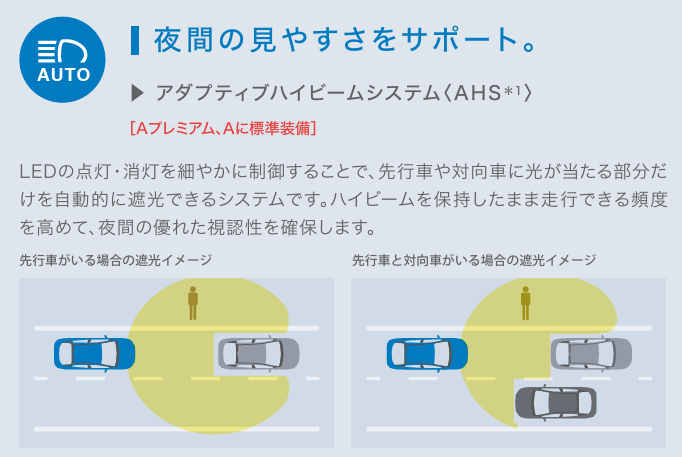 また、素晴らしい先進装備を数多搭載している。今では標準化しつつある「クリアランスソナー」や、「ブラインドスポットモニター」(死角に車両等がいるときに黄色い光が点くやつ)などももちろん装備。中でも特に私が好んで使っているのは「アダプティブハイビームシステム」である。似た機能に「オートマティックハイビーム」があるが、それとはわけが違う。前方に車両がいる場合でも、歩道など車に光が当たらない場所を的確に照らしてくれる。もう暗闇を恐れる時代は終わったのだ。